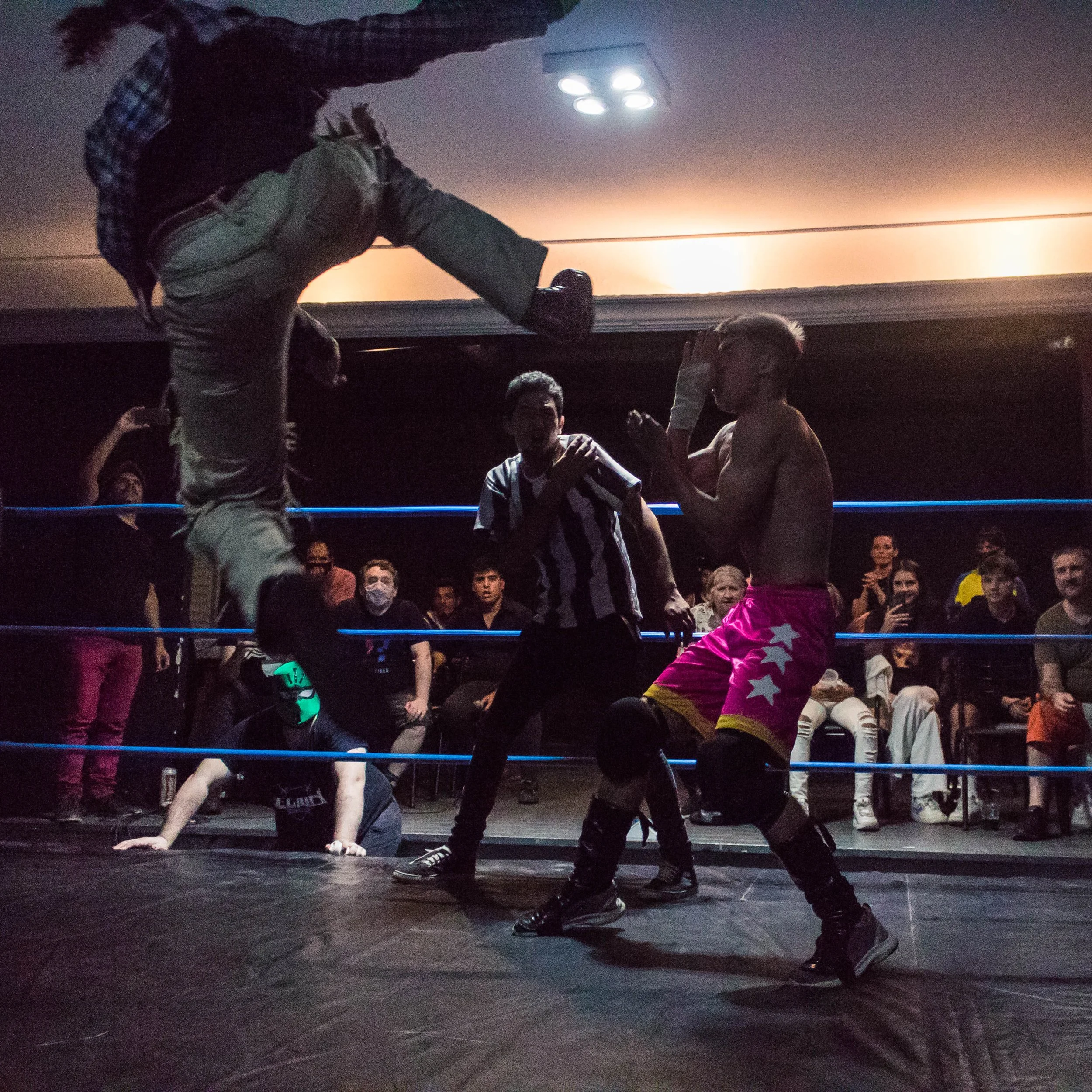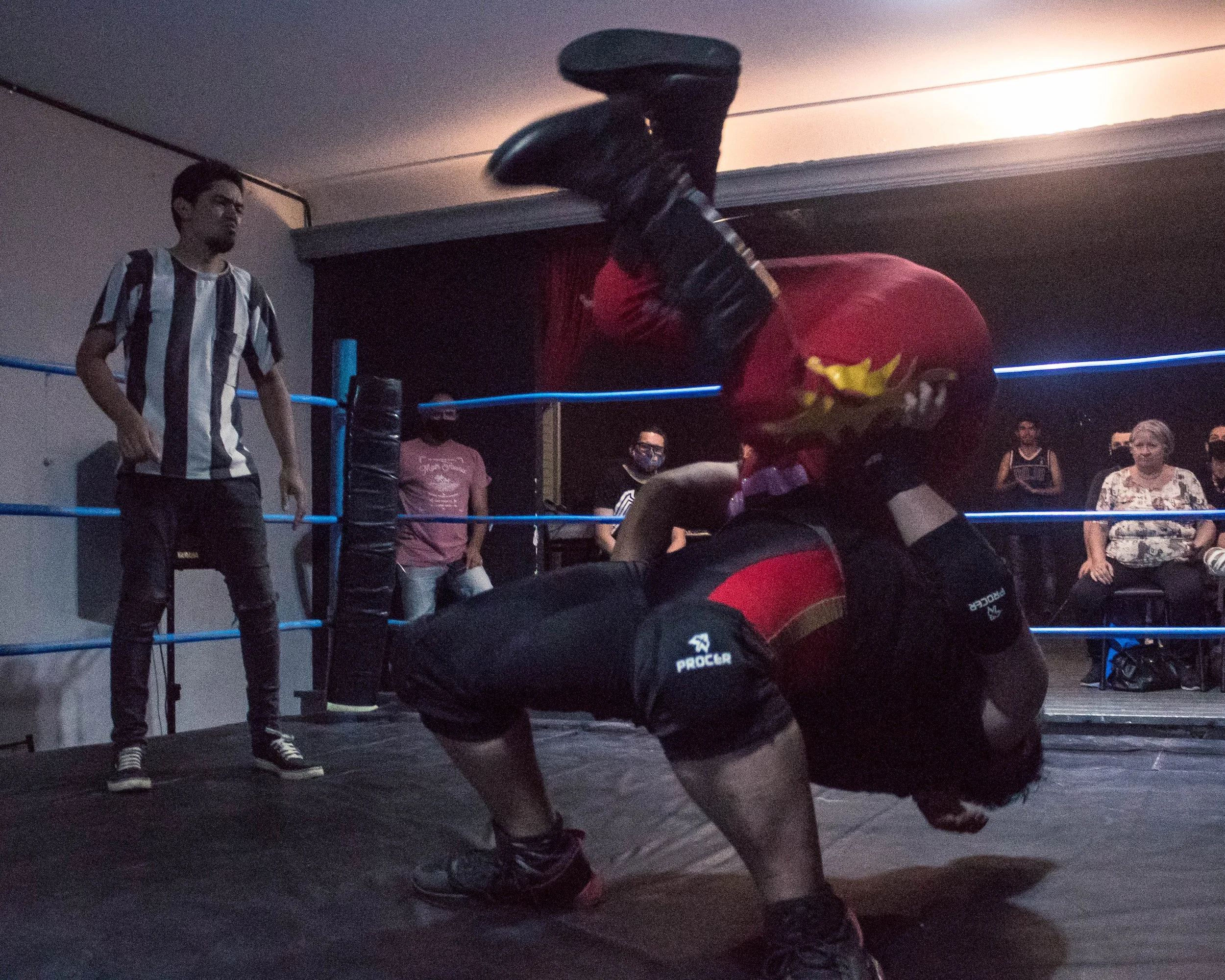 The night started with a six person scramble, involving the technically talented Ricky Rocca, the fierce rookie Taga Santos, the masked luchador McKiller, the opportunistic Mat del Mul, the crowd’s favorite Capuchita and surprisingly Jeyco, who had plans to leave the country but got delayed for Covid related issues.