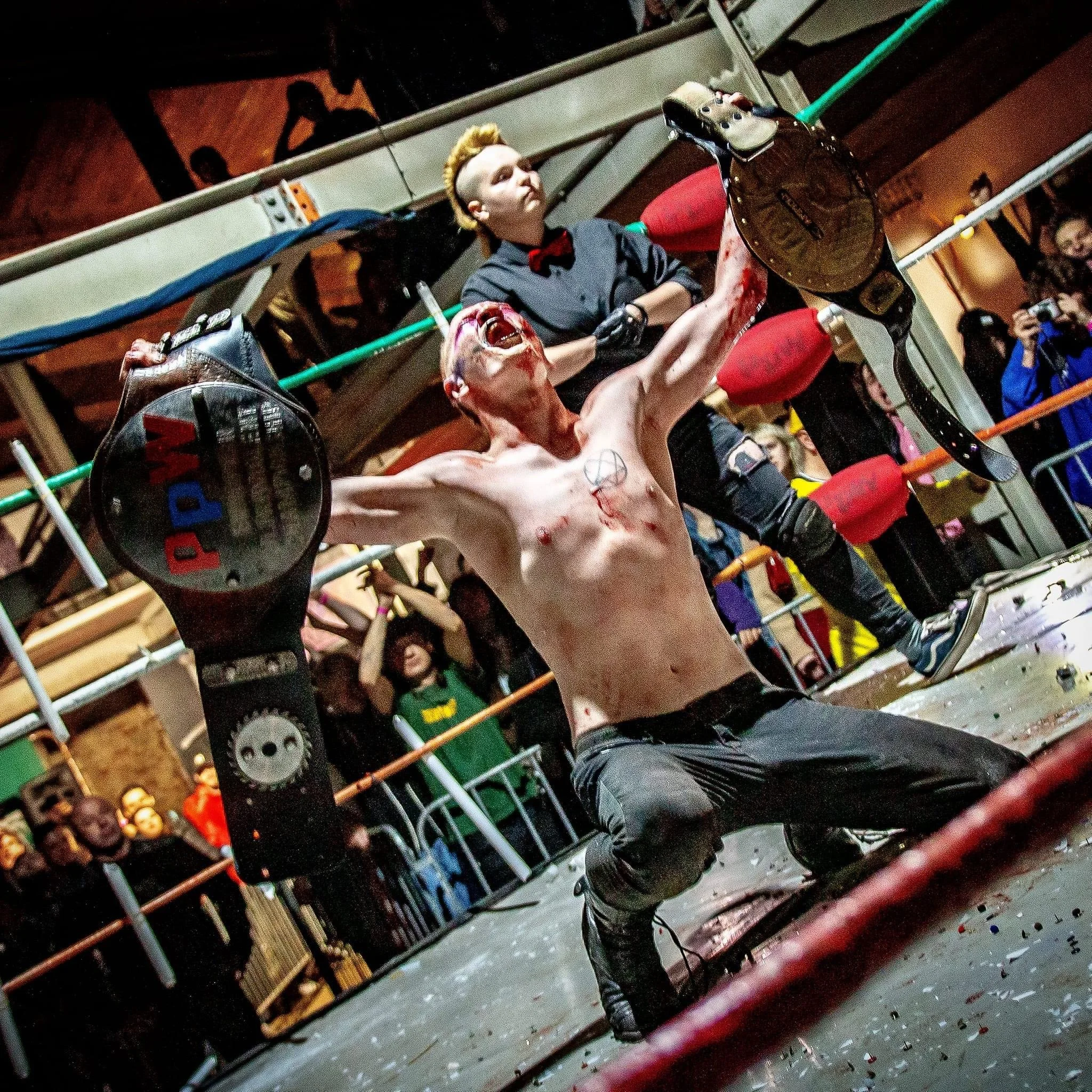 The deathmatch main event featured PpW’s own Johnny Blade taking on the visiting Viking who was making his second trip to PpW from the Czech Republic where he competes with VcV Original Wrestling. From the clips we’ve seen and the discussions with fans that we’ve had, it was a brutal and bloody match that both wrestlers were lucky to make it out alive from. One of the competitors not only made it out of the match alive, but he also left the match as a double champion.