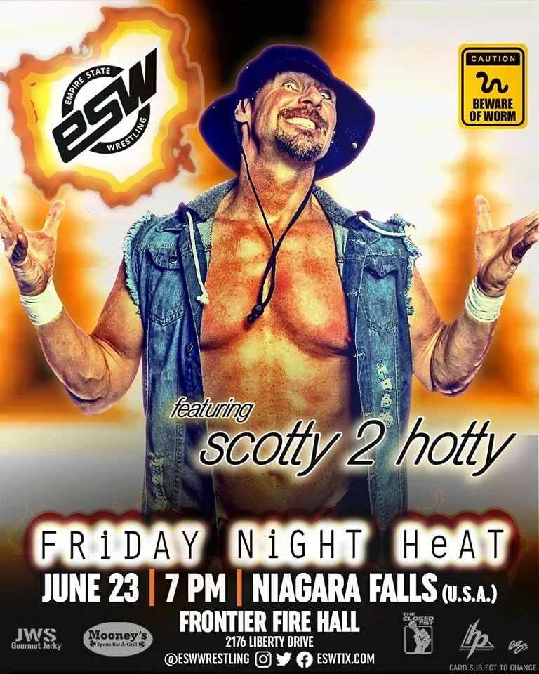 After an incredible event last month, Empire State Wrestling looks to build off its strong momentum on Friday, June 23 with Friday Night Heat at the Frontier Fire Hall (2176 Liberty Drive, Niagara Falls, N.Y.). The special guest for Friday Night Heat is former World Wrestling Entertainment Tag Team and Light Heavyweight Champion Scotty 2 Hotty. The last time Scotty 2 Hotty wrestled for ESW was in May 2016, when he challenged former ESW Heavyweight Champion Will Calrissian for the title in Olean, N.Y. Friday Night Heat will also feature a pair of women's singles matches on one card for the first time in ESW history.